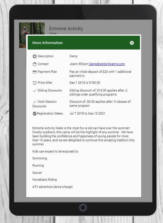 Make it easy for parents to find the right programs, with up-front info on where, when, what, and eligibility, plus pricing details.